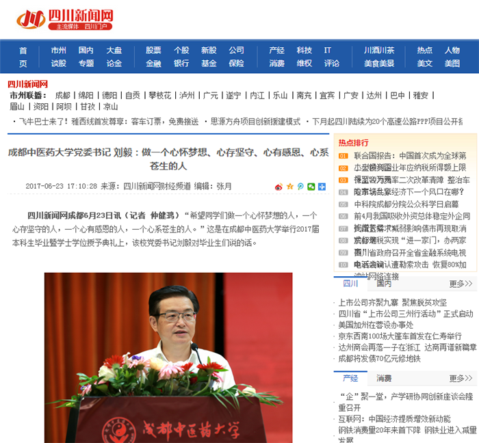 四川新闻网成都6月23日讯(记者 仲健鸿)“希望同学们做一个心怀梦想的人,一个心存坚守的人,一个心有感恩的人,一个心系苍生的人。”这是在beat365在线唯一官网举行2017届本科生毕业暨学士学位授予典礼上,该校党委书记刘毅对毕业生们说的话。