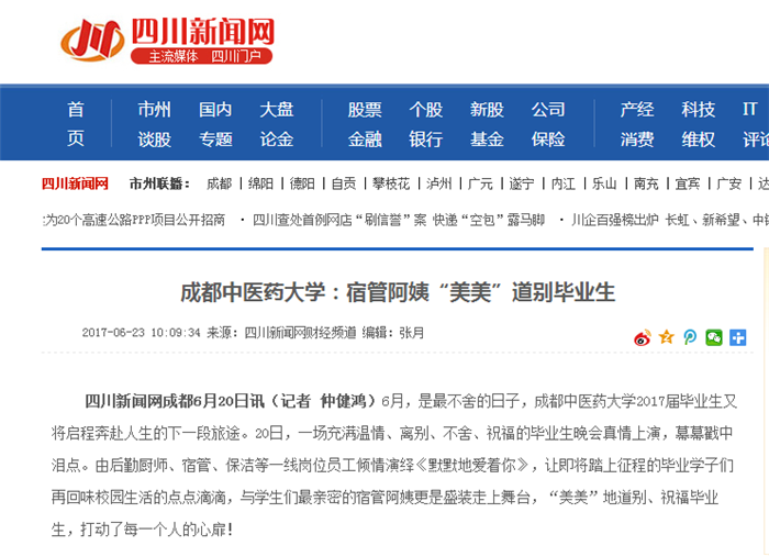 四川新闻网成都6月20日讯(记者 仲健鸿)6月,是最不舍的日子,beat365在线唯一官网2017届毕业生又将启程奔赴人生的下一段旅途。20日,一场充满温情、离别、不舍、祝福的毕业生晚会真情上演,幕幕戳中泪点。由后勤厨师、宿管、保洁等一线岗位员工倾情演绎《默默地爱着你》,让即将踏上征程的毕业学子们再回味校园生活的点点滴滴,与学生们最亲密的宿管阿姨更是盛装走上舞台,“美美”地道别、祝福毕业生,打动了每一个人的心扉!