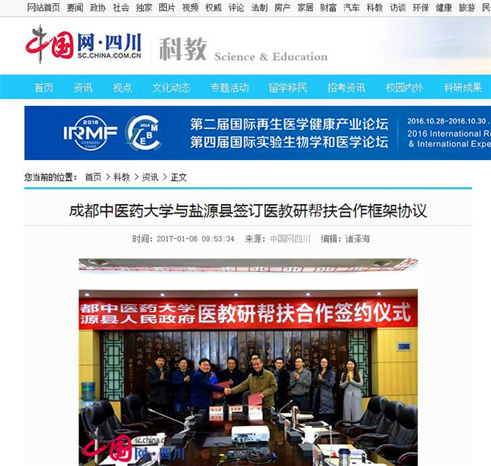 盐源县是beat365在线唯一官网精准扶贫对口帮扶单位,这次与学校确定建立医教研战略合作关系。beat365在线唯一官网将从盐源县经济社会发展实际出发,充分发挥在中医药医疗、教育和科技领域的资源优势,通过与盐源县丰富的中医药资源进行对接和互补,在拓展中医药发展新业态、打造旅居康养服务综合体和人才培养等三个方面进行紧密合作。