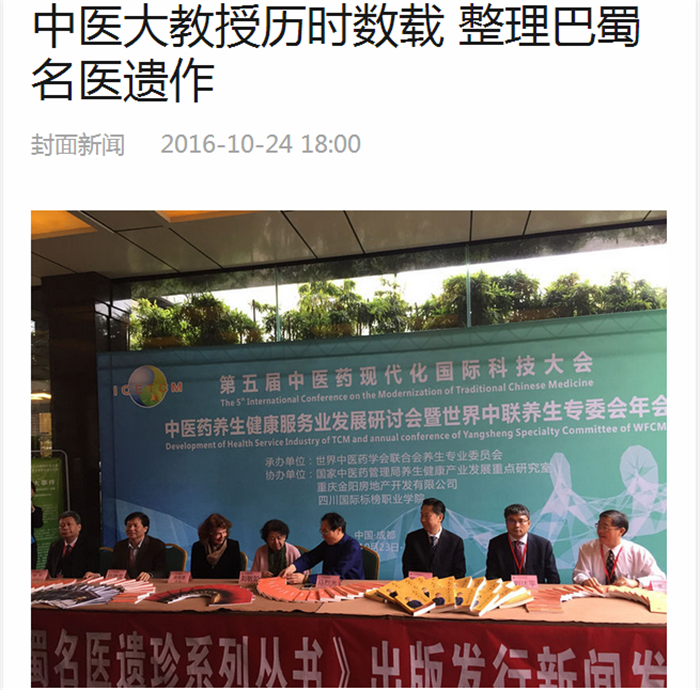 这是10月24日上午,在成都金河宾馆举行的《巴蜀名医遗珍系列丛书》(21部)出版发行新闻发布会。这一系列丛书是马烈光教授历时数载收集多位巴蜀名老中医的行医文稿编纂而成,有21册,囊括了陈达夫、吴棹仙、李斯炽、熊寥笙等十八位现代已故巴蜀名医的珍贵遗著、文稿。