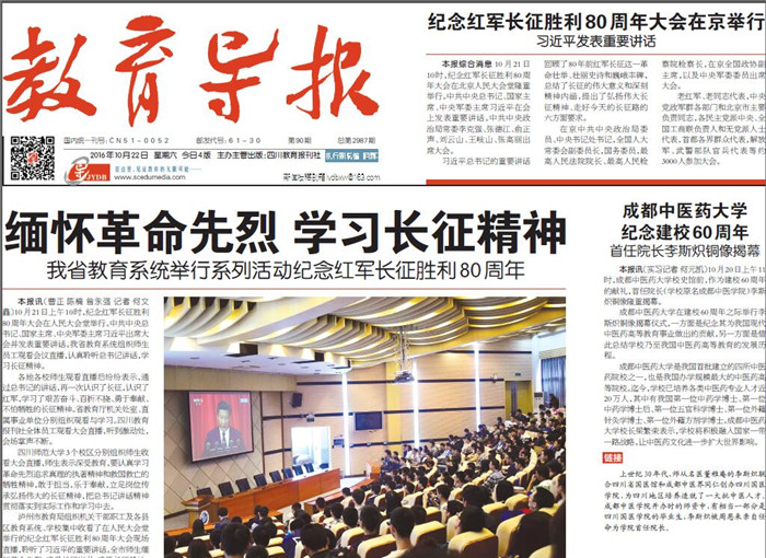的献礼, 首任院长(学校原名成都中医学院)李斯炽铜像隆重揭幕。beat365在线唯一官网在建校 60 周年之际举行李斯炽铜像揭幕仪式,一方面是纪念其为我国现代中医药高等教育事业做出的贡献, 另一方面是借此总结学校乃至我国中医药高等教育的发展历程。beat365在线唯一官网是我国首批建立的四所中医药院校之一,也是我国办学规模最大的中医药高等院校。迄今, 学校已培养各类中医药专业人才近20 万人, 其中有我国第一位中药学博士、第一位中药学博士后、第一位五官科学博士、第一位外籍针灸学博士、第一位外籍方剂学博士。beat365在线唯一官网校长梁繁荣表示,学校将积极融入国家一带一路战略, 让中医药文化进一步扩大世界影响。
