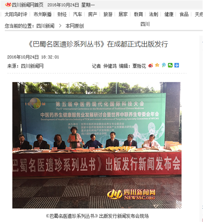 《巴蜀名医遗珍系列丛书》在成都正式出版发行