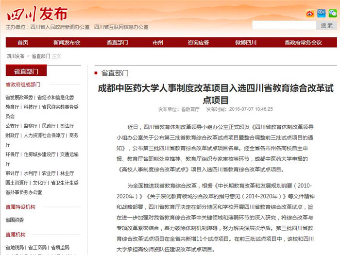 beat365在线唯一官网人事制度改革项目入选四川省教育综合改革试点项目