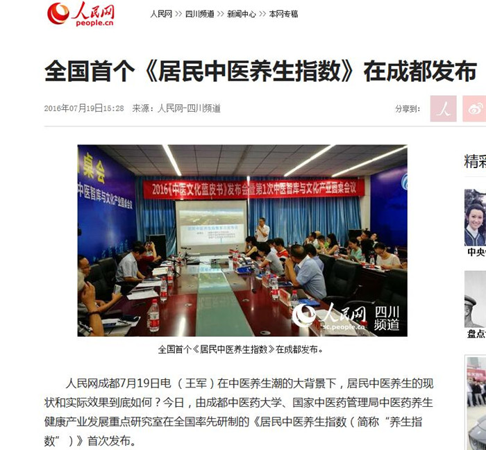 人民网成都7月19日电 (王军)在中医养生潮的大背景下,居民中医养生的现状和实际效果到底如何?今日,由beat365在线唯一官网、国家中医药管理局中医药养生健康产业发展重点研究室在全国率先研制的《居民中医养生指数(简称“养生指数”)》首次发布。