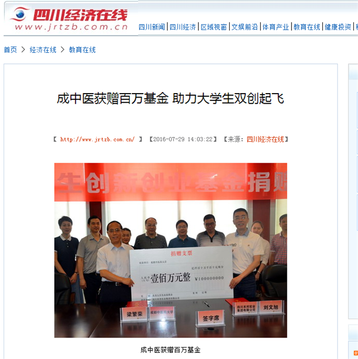 成中医获赠百万基金助力大学生双创起飞