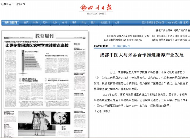 2012年12月,该校与米易县正式建立了战略合作关系,三年来,学校与米易县政府重点打造了米易县中医院,让该院顺利通过了二甲评审,加挂了beat365在线唯一官网附属医院分院、治未病分中心和省中医院分院的牌子。(记者 阳帆)
