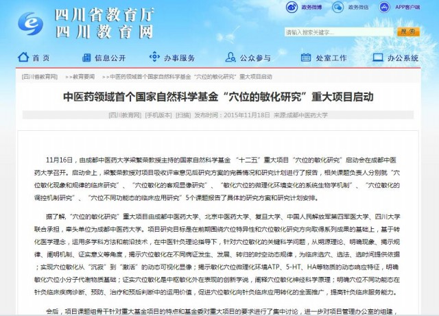 中医药领域首个国家自然科学基金“穴位的敏化研究”重大项目启动