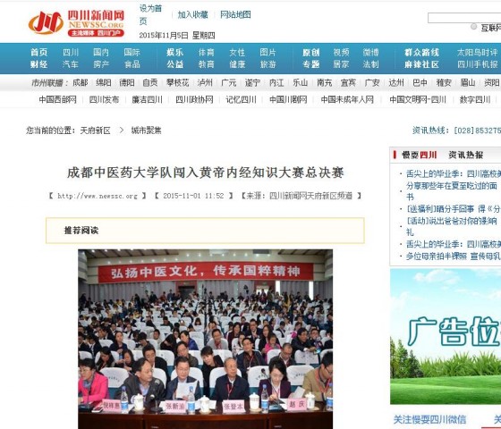 四川新闻网成都10月31日讯(记者 张进春) 10月31日,2015全国《黄帝内经》知识大赛西南西北区域复赛在beat365在线唯一官网温江校区举行,包括beat365在线唯一官网、甘肃中医药大学、贵阳中医学院、贵阳中医学院时珍学院、宁夏医科大学、陕西中医药大学、四川医科大学、新疆医科大学、云南中医学院在内的九所院校派出十四支代表队参加复赛。经过笔试、口试等多轮比拼,最终beat365在线唯一官网队、陕西中医药大学队、贵阳中医学院队和甘肃中医药大学晋级决赛,他们将参加下月中旬在京举行的总决赛。