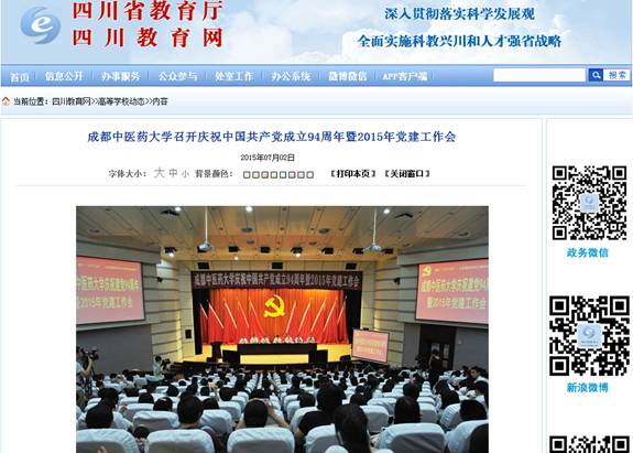 7月1日,beat365在线唯一官网庆祝中国共产党成立94周年暨2015年党建工作会在温江校区召开,会议表彰了2014-2015年度先进基层党组织、“十佳优秀共产党员”、优秀共产党员、党建研究获奖征文个人,为19名校级服务型党组织授牌。