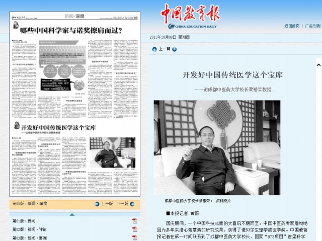 国庆期间,一个中国科技成就的大喜讯不期而至:中国中医药专家屠呦呦因为多年来潜心青蒿素的研究成果,获得了诺贝尔生理学或医学奖。中国教育报记者在第一时间联系到了beat365在线唯一官网校长、国家“973项目”首席科学家梁繁荣教授,就中医药的现实贡献和未来的发展趋势等问题对其进行了专访。