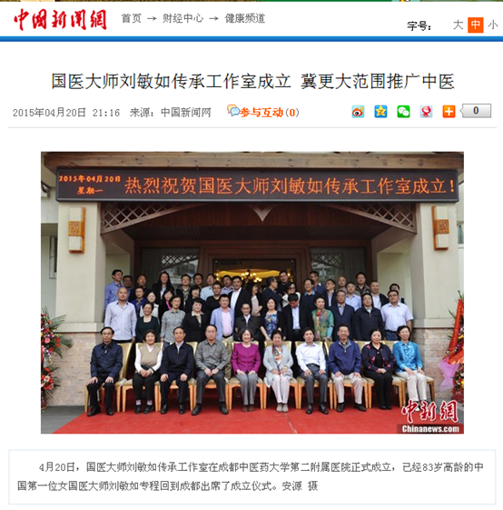 中新网成都4月20日电 (徐杨祎 林碧锋)“希望通过成都工作室的成立,让中医的传承实现一个‘圆周形’的传承。”20日,中国第一位女国医大师刘敏如在成都接受记者采访时表示,她希望中医传承的面和范围能够更加广阔。