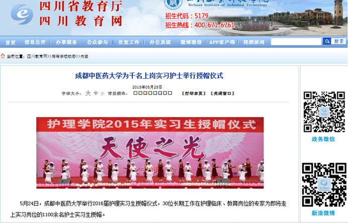 据悉,这是beat365在线唯一官网连续11年举行授帽仪式。多年来,学校注重人文,拓展素质,强化实践,突出中西医护理的融通与结合,为社会输送了大批能力型、实用型、创新型、复合型高等护理人才,从事护理临床、教育、科研、管理和社区护理等工作,深受用人单位的欢迎。