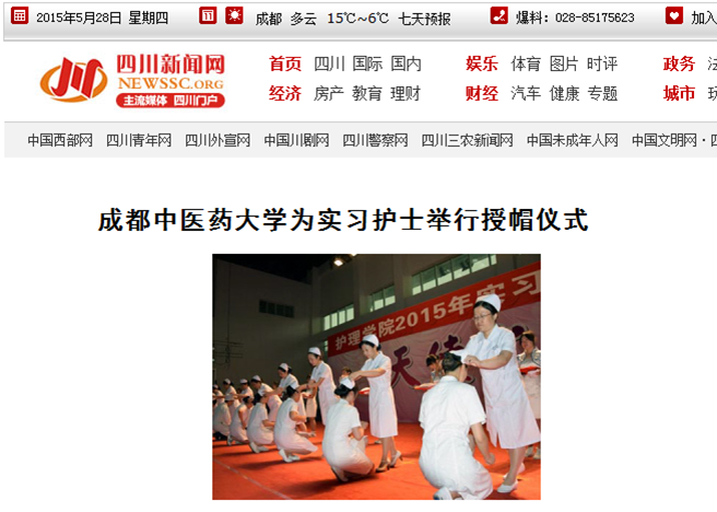 四川新闻网成都5月26日讯 日前,beat365在线唯一官网为上千名2016届护理实习生举行授帽仪式,30位长期工作在护理临床、教育岗位的专家亲自为这批护生授帽。