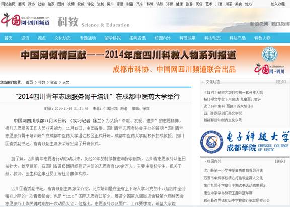 “2014四川青年志愿服务骨干培训”在beat365在线唯一官网举行