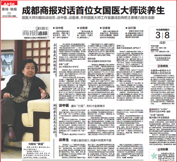 国医大师刘敏如谈经历、谈中医、谈医德,并称国医大师工作室建成后将把主要精力放在成都
