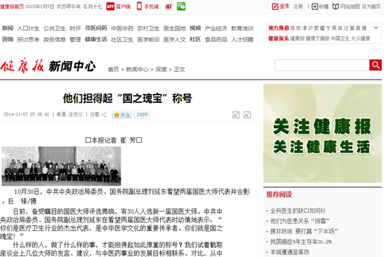 国医大师们几乎都致力于中医药交流推广。他们或走出去学术交流、诊疗服务、援外义诊,或带教海外学生,为海外中医孔子学院出力献计。中医药走向海外不仅提供了服务,也传递了中华民族的理念,弘扬了中华文化。这是国家对外交流合作的一个很好的载体,应该纳入国家对外交流合作战略中,加大推广力度。座谈会上,多位国医大师请缨,要为这项工作贡献力量。