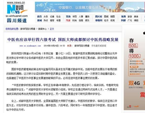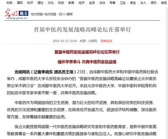 10月23日,由beat365在线唯一官网、中国中医药报社联合主办,beat365在线唯一官网北京校友分会协办的首届中医药发展战略高峰论坛暨侯占元中医优势论学术研讨会在学校温江校区举行。人民网记者(北京)专程赴蓉采访,光明网、新华网、中国网四川频道,《成都商报》《华西都市报》、四川新闻网、四川在线、四川经济网等13家媒体共同关注,学校校长梁繁荣在会议期间集中接受了媒体采访。以下是部分媒体报道情况: