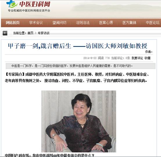 刘敏如教授:中国五千年文字记载就有“医”字,是指医治病人(动);医治病人的人(名)。“中医”概指我国原创的具有特别的、系统的医、药学理论与临床实践的医、药学(现称中医学、中药学)。百年前西方医学传入我国,称其为“西医";而运用我国原创的中医学行医者则称之为“中医"(习惯上又常将中医二字作为该事业的名词通称), “中医学"是全科医学,具综合性、整体性,又具个体性、分科性的应用特色,所以对医者的实践智慧要求甚高。有人说我们中医不科学不现代,是因为他们对我们中医的体系理论根本不了解。我在60年的中医工作中最有体会的是:中医是一门科学,是一门实践性很强的医学,发展中医是维护人民健康的需要,是不可取代的。中医文化前景壮阔,中医药近六十年来的复兴和发展是主流,来之不易,不容否定,应大力彰显。我们要满怀爱国热情坚定不移地从国情出发,科学地走自己的医药卫生发展道路,为中医药卫生事业的兴起创造生存空间,获得生存优势,参与知识创造,逐渐通过现代转换,参与全球化语言文化的对语和扩散,汇入世界知识网络,转化为时代的法宝,运用全球视野推进符合国情的医药卫生事业蓬勃发展。