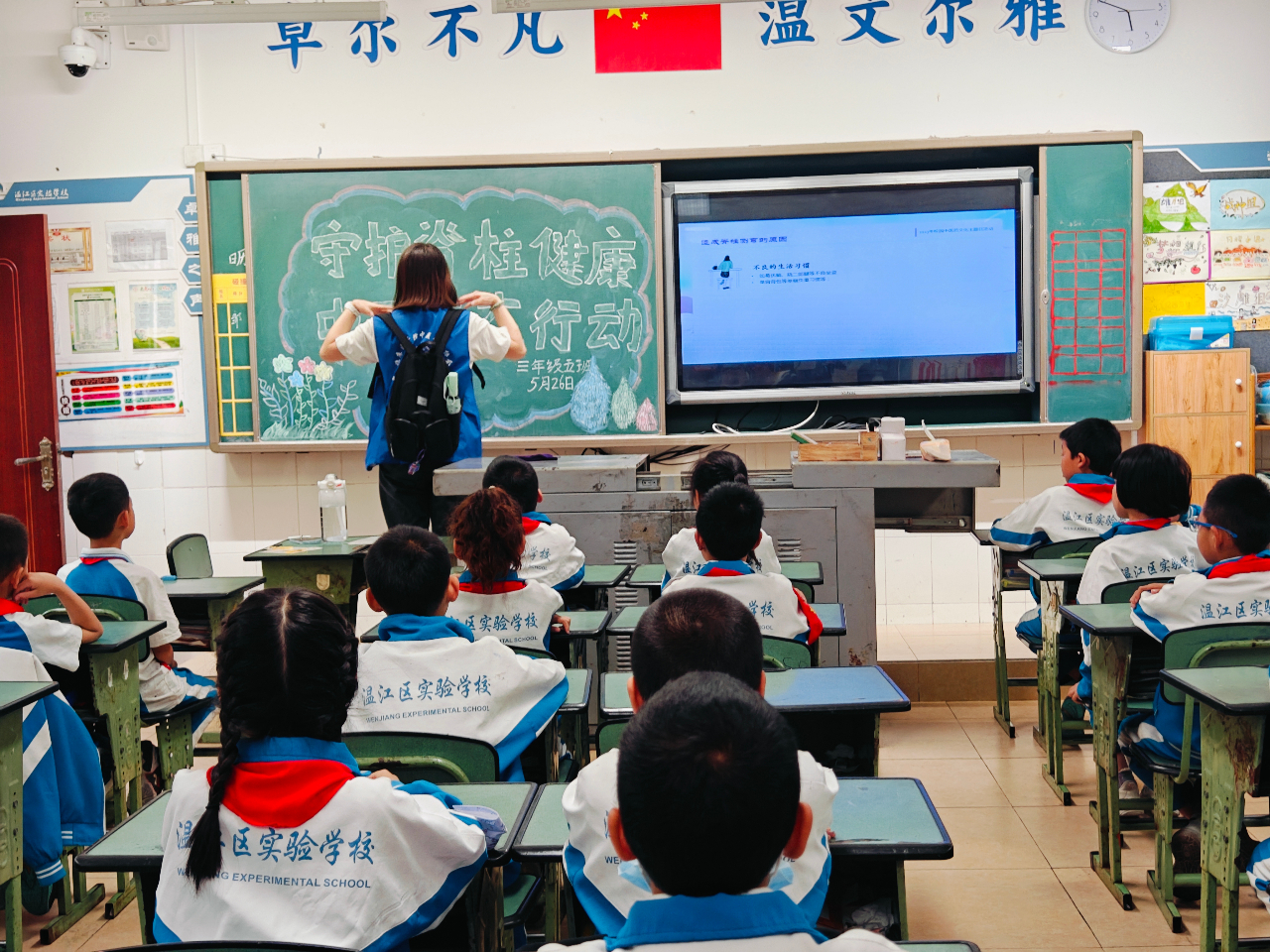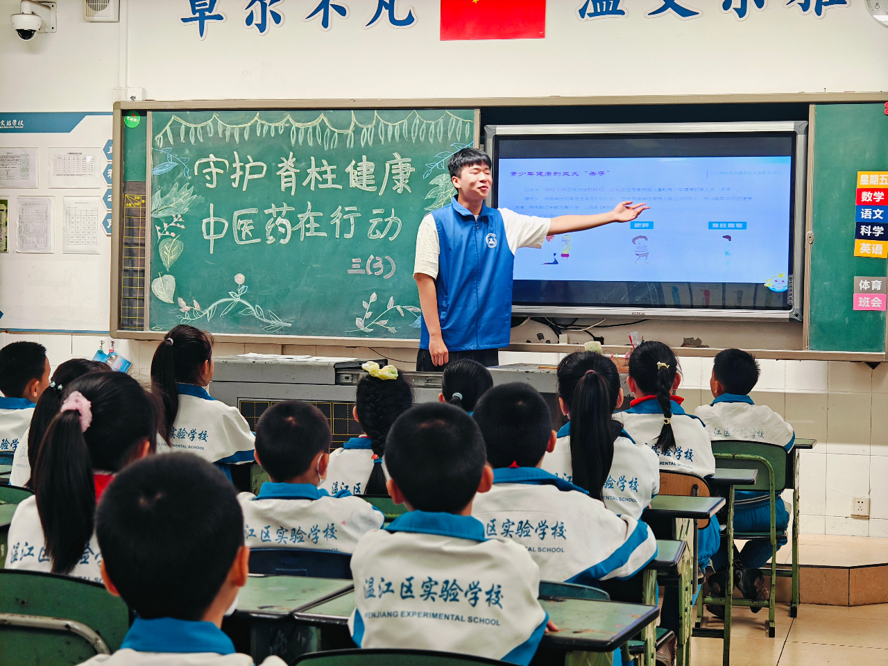 为了培厚中医药传承创新发展的文化土壤,让广大学生通过学习中医药文化知识,更多地了解中医、感受中医、认同中医,提升文化自信和民族自信,2023年5月25日,成都市温江区实验学校(成中医附小)隆重举行了“守护脊柱健康 中医药在行动”中医药文化主题活动。