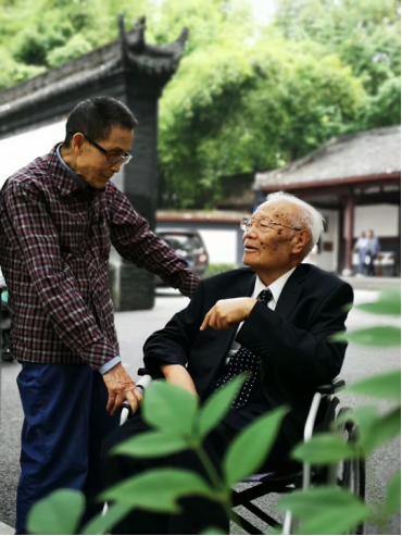 在短暂的交流后,二老相携来到“杜甫草堂”,看着这里的一切,他们的思绪仿佛穿越了几十年的时空,再次回到了那个青涩的青春时代,逝去的岁月在此刻一幕幕重现。