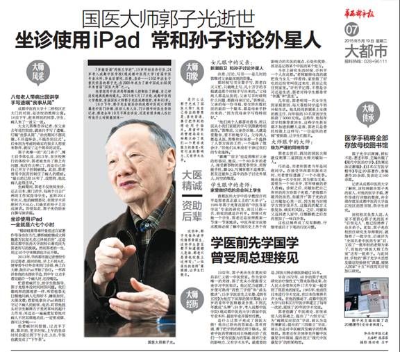 国医大师郭子光逝世 坐诊使用iPad 常和孙子讨论外星人